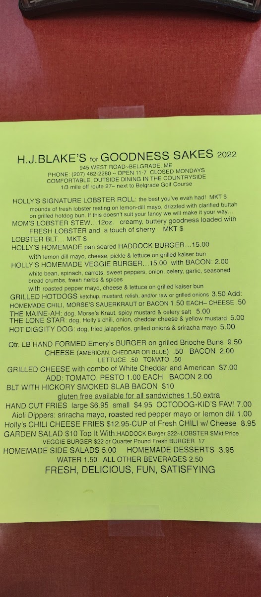 Welcome to HJ Blakes for Goodness Sakes, a hidden gem nestled in Belgrade, Maine. Renowned for its incredible lobster rolls, this eatery features generous portions filled exclusively with succulent claw meat, expertly seasoned and served on a perfectly toasted bun. Customers rave about the lobster’s freshness—it's a delightful seafood experience that stands out in Maine's culinary scene.